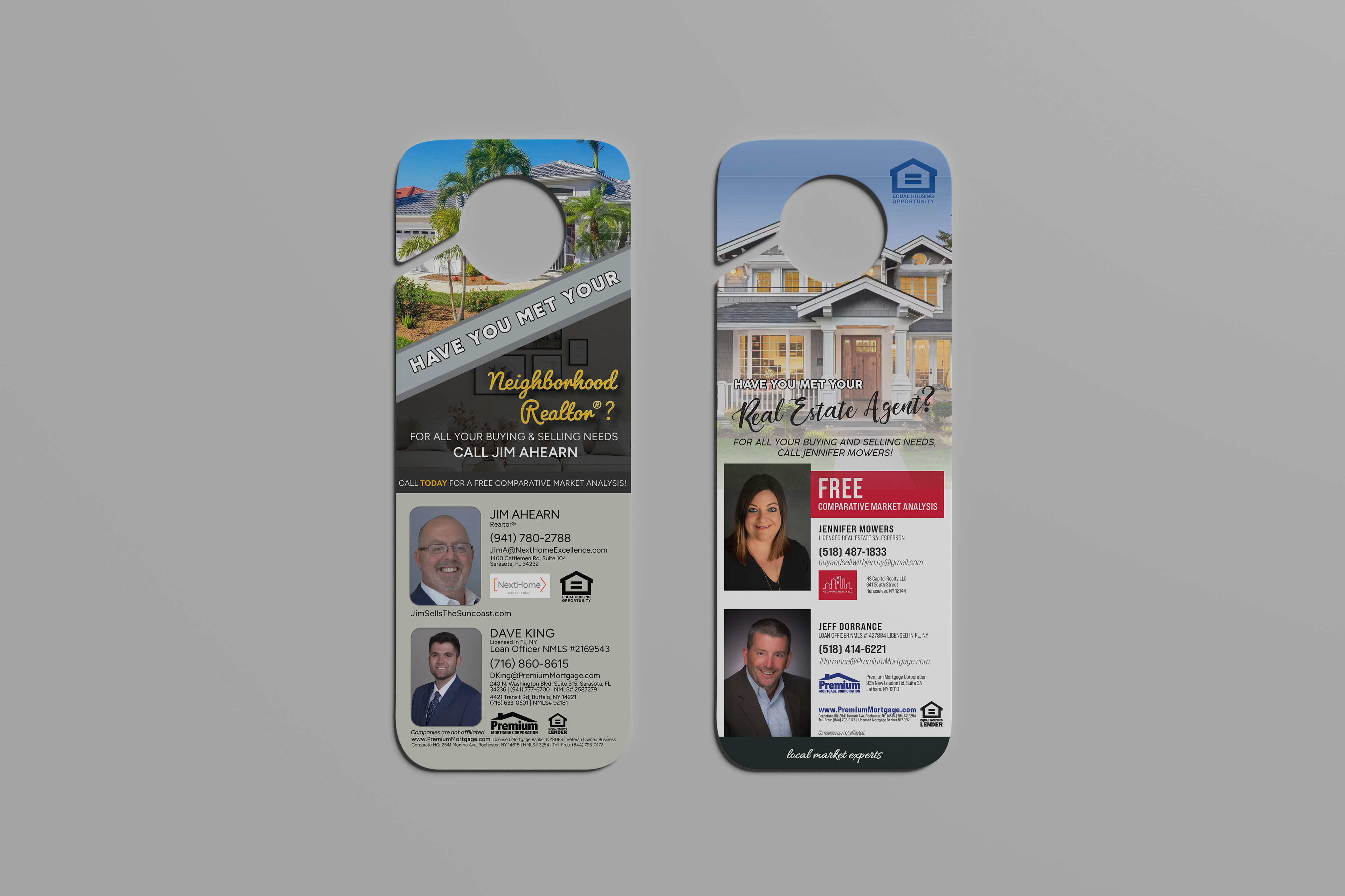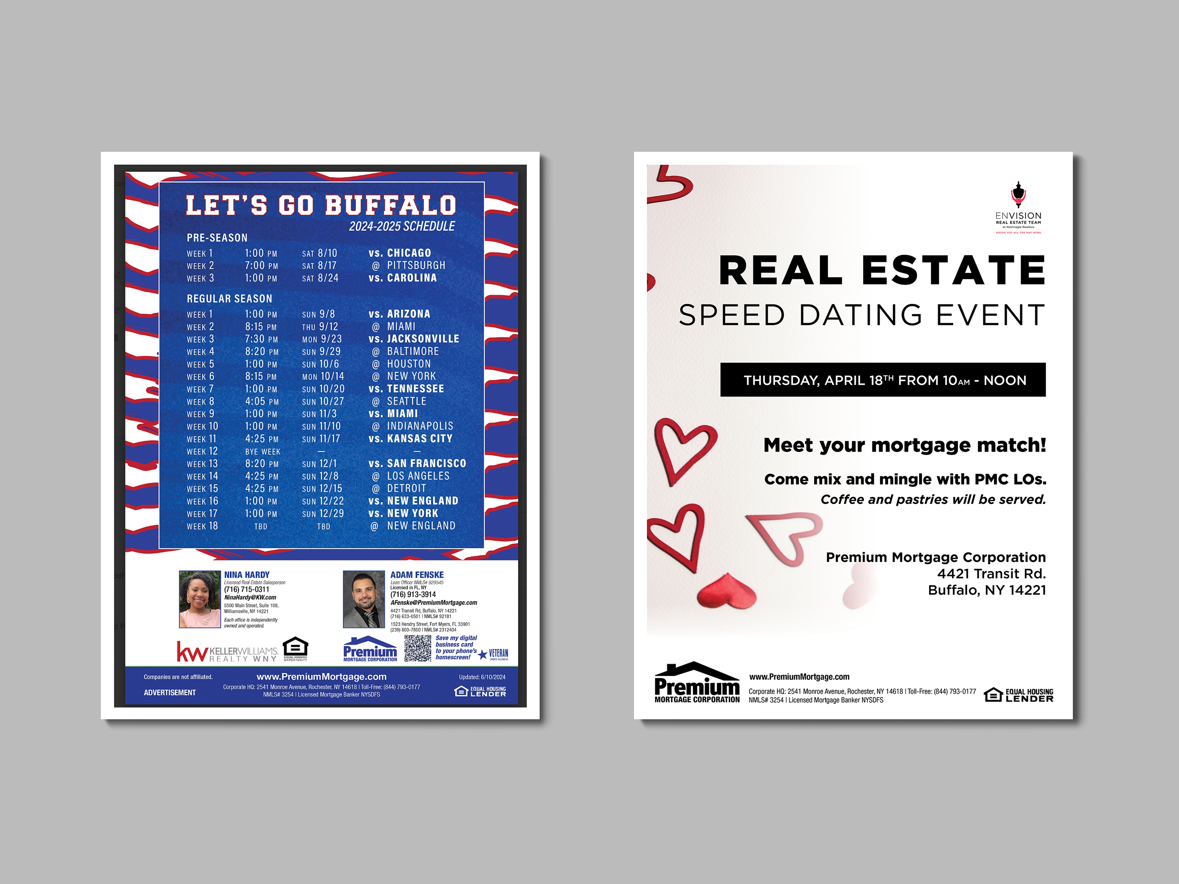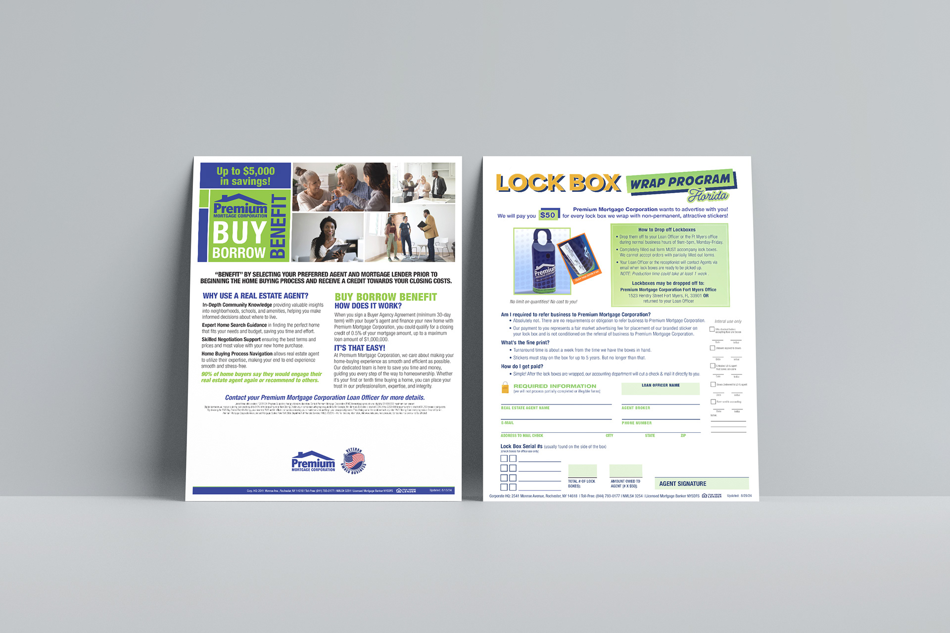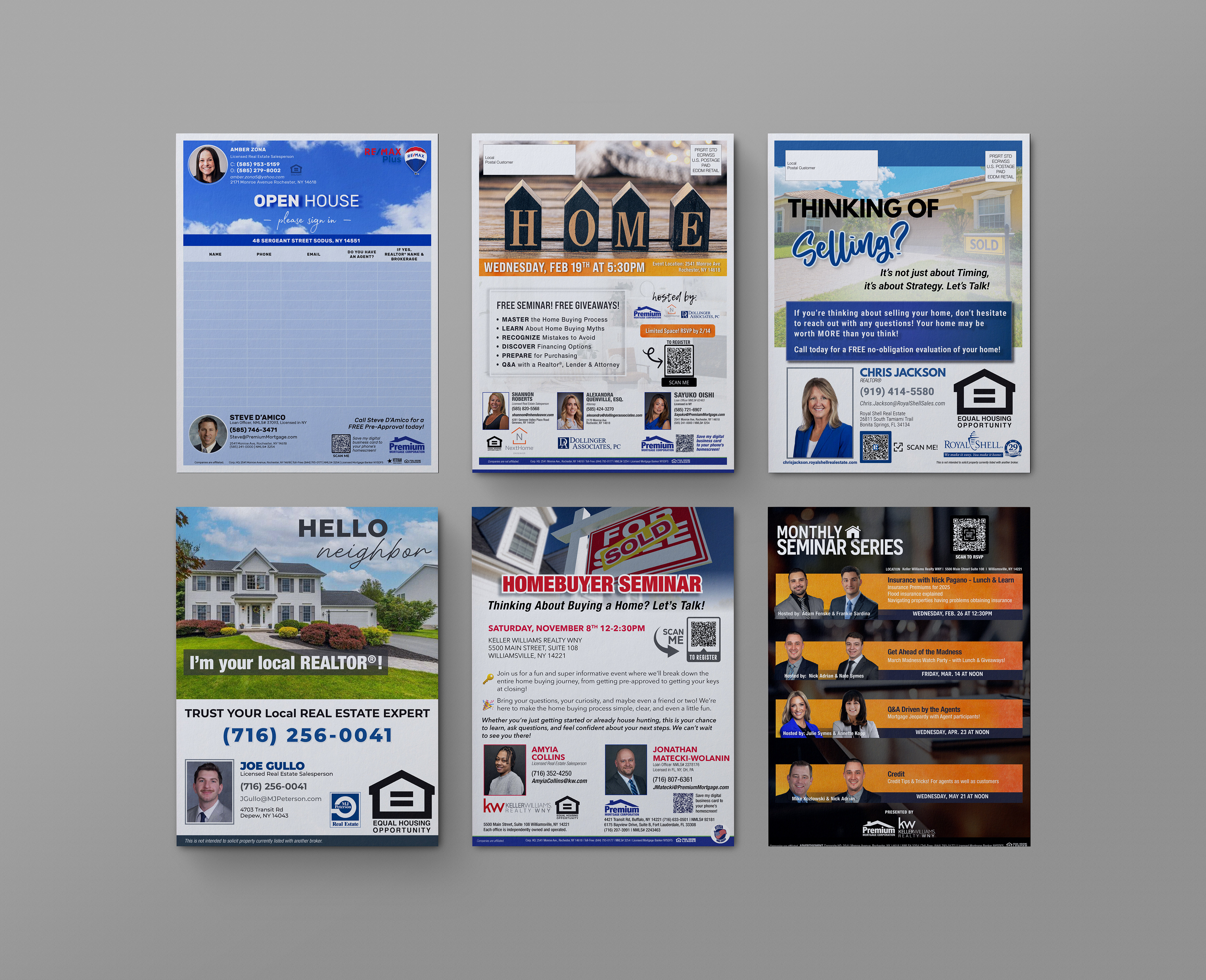 Open House sign-in sheet, co-branded EDDMs, and seminar flyers.